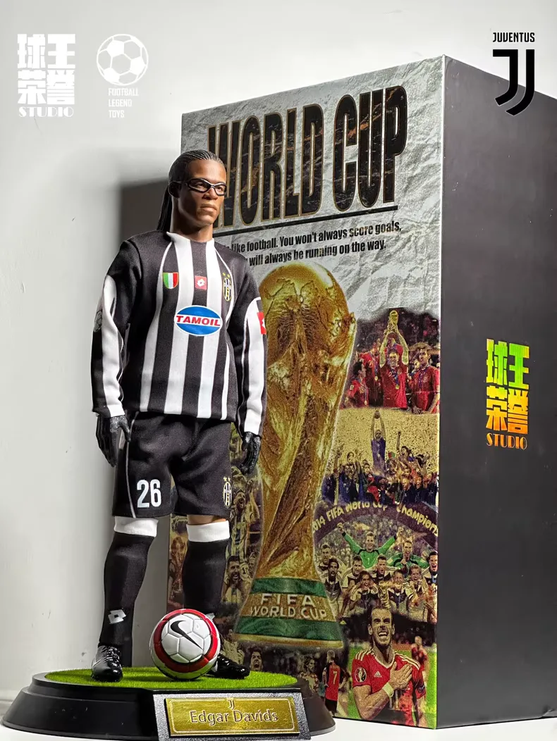 A 1/6 scale Edgar Davids Juventus football collectible figure, studio hand-painted and individually numbered, for collectors who still remember the “Pitbull” charging through midfield in black and white.