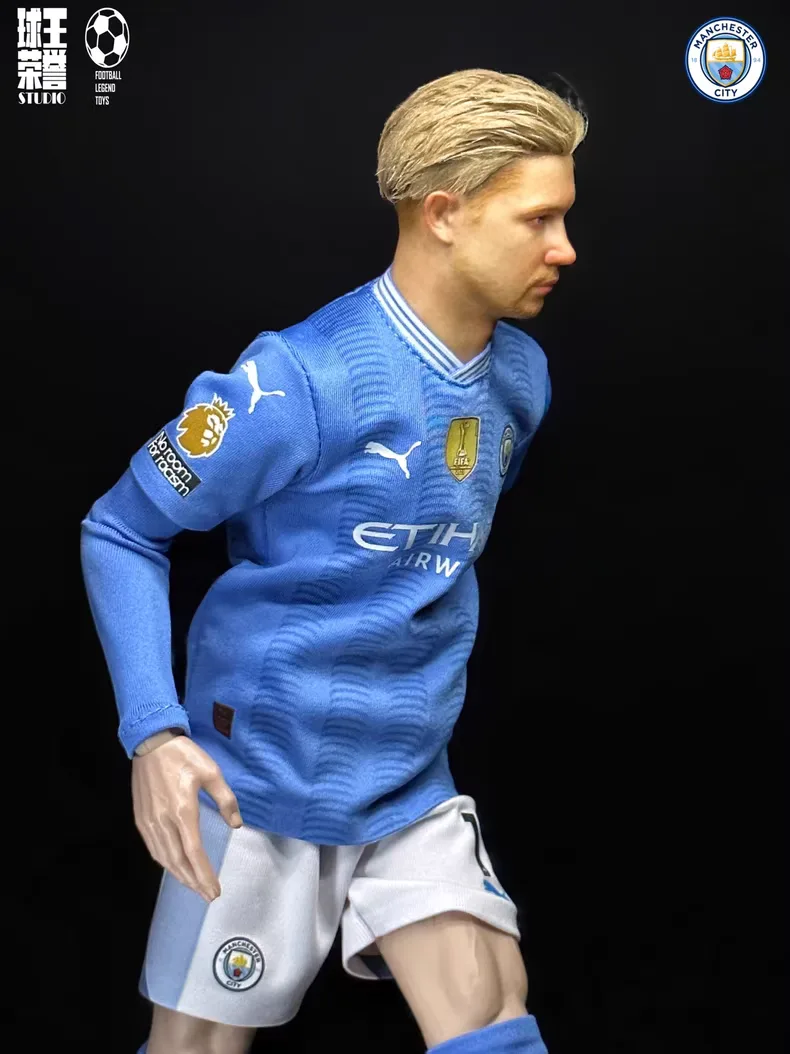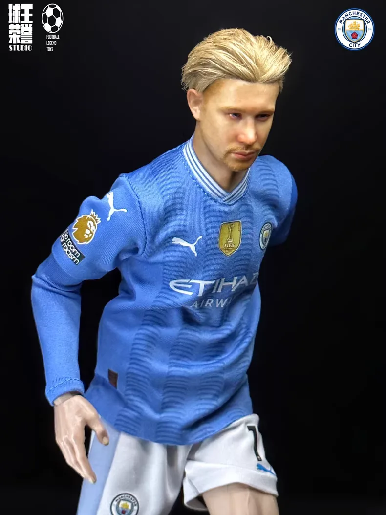 A rooted-hair 1/6 Kevin De Bruyne figure in the 2024 Manchester City home kit, studio hand-painted and individually numbered for fans who love KDB’s new look, laser passes and complete midfield game under the Etihad lights for club and country.
