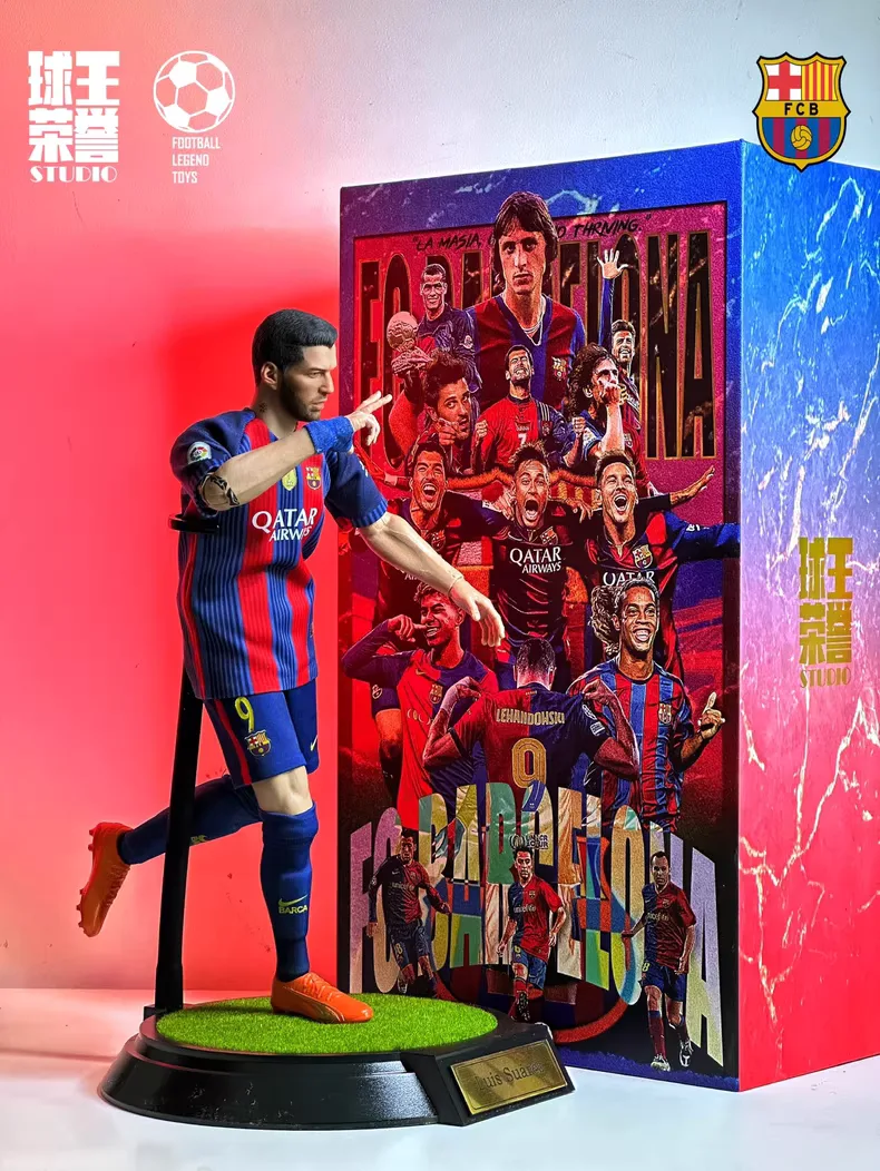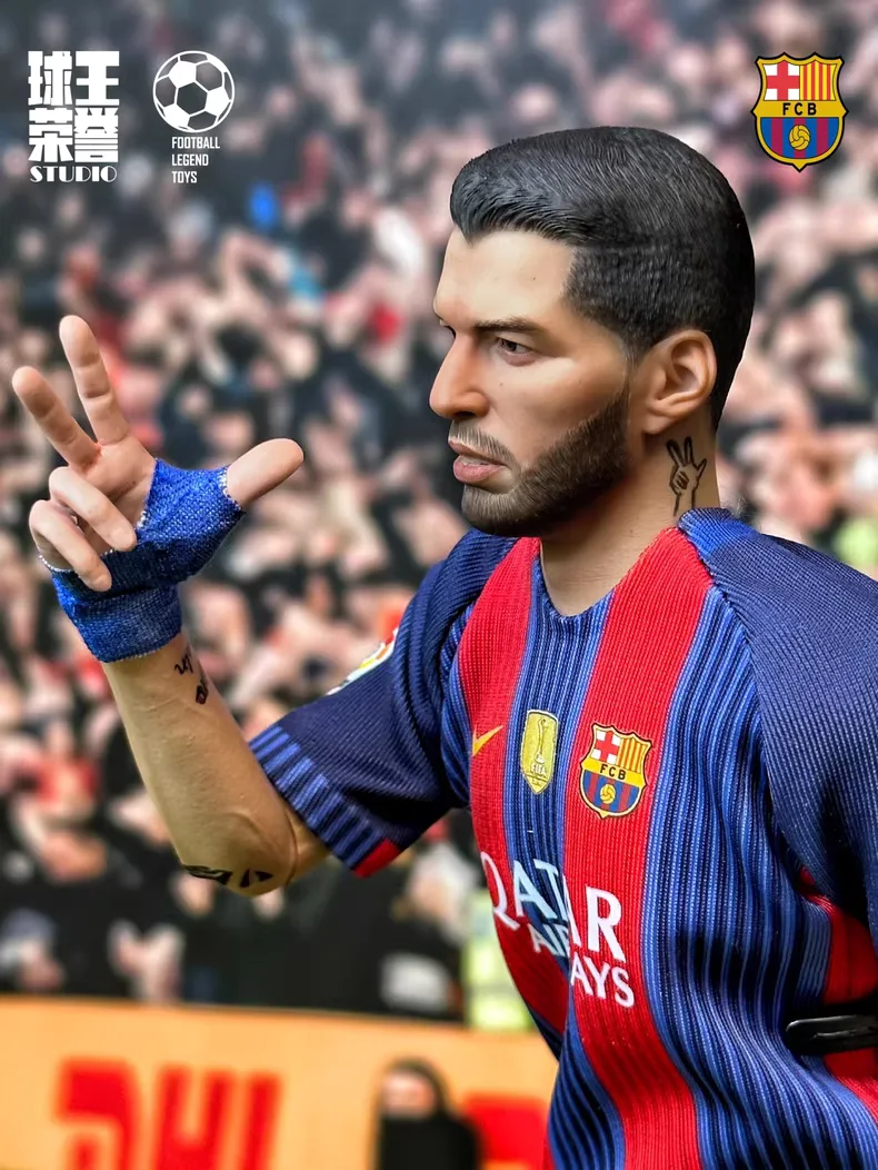 A 1/6 scale Luis Suárez figure in the FC Barcelona home kit from the MSN era, studio hand-painted and individually numbered for fans who still remember the Uruguayan No.9 pressing defenders, combining with Messi and Neymar and finishing ruthlessly at Camp Nou.